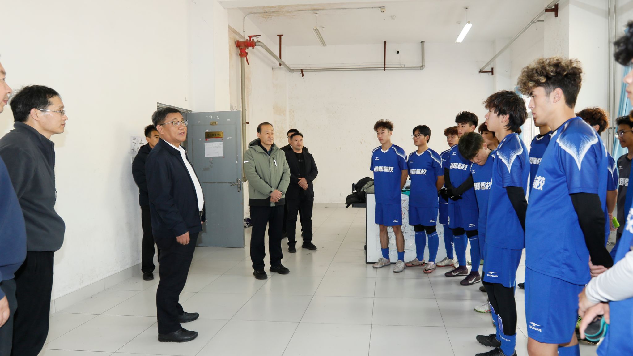 赛前,韩瑞东亲切看望了我院参赛队员,细致询问大家的赛前准备与身体状况,并热情勉励队员:一要在赛场上发挥敢于拼搏的潍职精神和体育精神,全力以赴赛出竞技水平;二要尊重对手,恪守比赛规则赛出体育风格,充分展现新时代大学生团结协作、昂扬向上的精神风貌;三要在对抗激烈的赛事中保护好自己,同时保护好对方球员,注意安全。